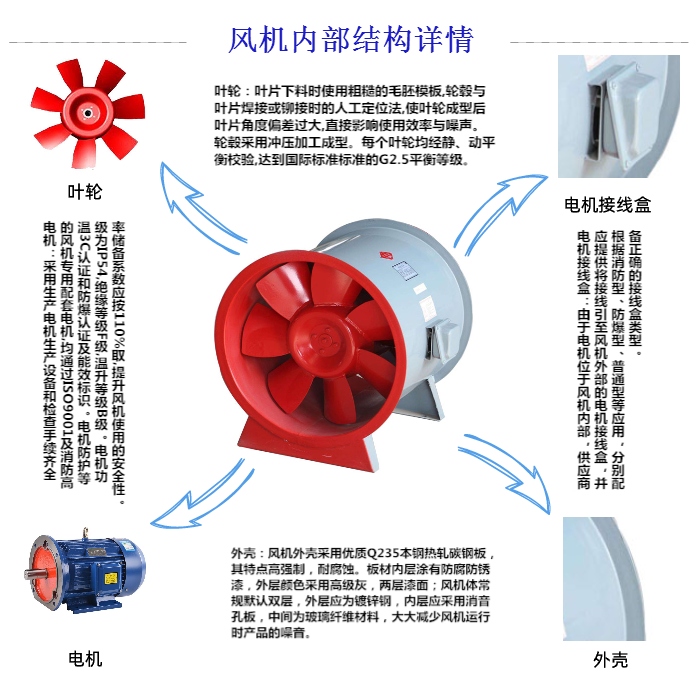 1、排煙風(fēng)機(jī)中離心風(fēng)機(jī)和軸流排煙風(fēng)機(jī)的區(qū)別:離心風(fēng)機(jī)是軸向進(jìn)風(fēng),徑向出風(fēng),利用離心力做功,使空氣提高壓力,因而在同等外形尺寸下,產(chǎn)生的壓力要大于混流風(fēng)機(jī)。